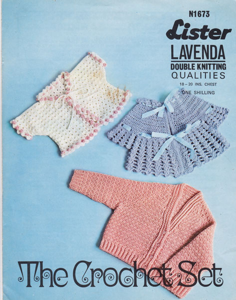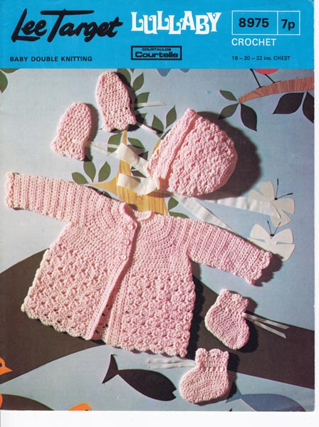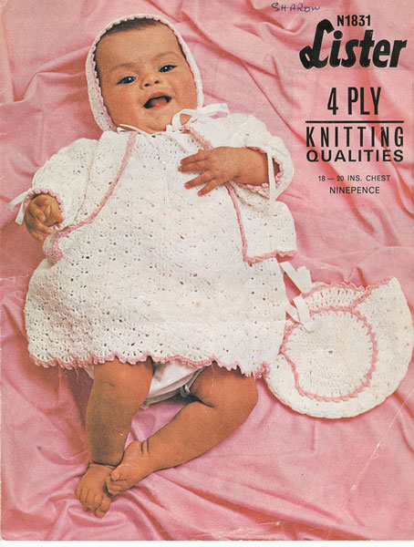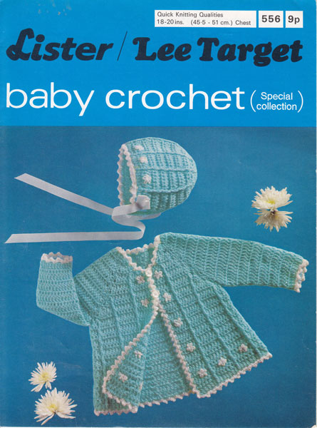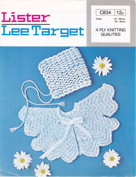 Lister lee C834: Fabulous vintage crochet pattern for baby jacket and bonnet from 1970's worked in 4ply. to fit 16"-18" chest. with metric chart included on back page. Pattern is in great condition. not available at present |