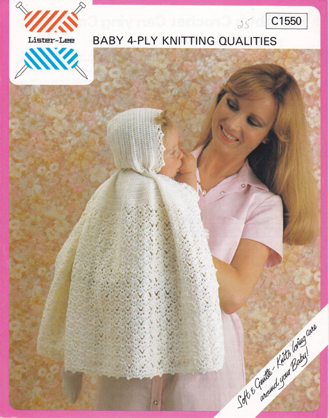 Lister-Lee C1550cr: Vintage crochet pattern for stunning cape for baby, great for christening or for that special occassion. Length 20" width at lower edge 46" worked in 4ply. colour pdf £150 |