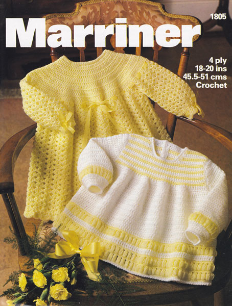 Marriner 1805cr: Lovey vintage crochet pattern for baby dresses, two different styles in 4ply. Late 1970's. To fit 18"-20" chestpattern in great condition. colour All images and text on this website are copyright fab40s.co.uk and are for reference and historical interest only You can email sue@fab40s.co.uk |