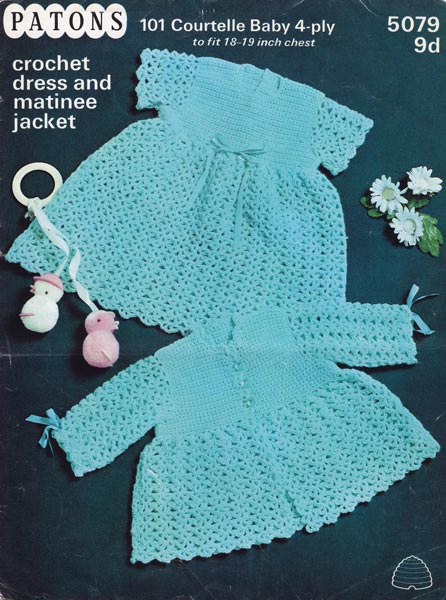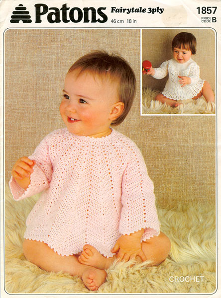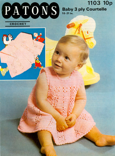Patons 1103:Vintage crochet pattern for baby dress anf matinee coat to fit18-21" chest in vintage 3ply, work tension peice to see if a change in seze of hook is needed or work in modern 4ply.1974 colour All images and text on this website are copyright fab40s.co.uk and are for reference and historical interest only You can email sue@fab40s.co.uk |