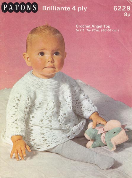 Patons 2403: Lovely vintage crochet pattern for baby angel tops or dresses. 1973 Make a bit longer for a dress, look great over jeans, leggings or tights or on their own in the summer, dainty light little dresses for modern baby girls who would like a retro look! Pattern in good condition. original pattern as shown £2.00 colour All images and text on this website are copyright fab40s.co.uk and are for reference and historical interest only You can email sue@fab40s.co.uk