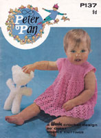 *Peter Pan P137: Great vintage baby crochet dress pattern 1969. This lovely pattern is for little dress to fit 20 inch chest and is worked indouble knitting yarn includes little flap with The Lost Shodow extract from book.
