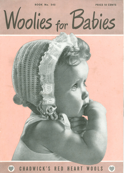 Woolies for Babies Book 245: This vintage knitting book has 16 pages and dates from 1948 USA. The patterns are mostly CROCHET, but there are several lovely knitting patterns, one set has simple embroidery at the edges, several cardigans, one little cross-over as well as 3 bonnet, mitts and slippers in delightful crochet, 3 matinee sets in crochet and two pram blankets in crochet. This book is in fabulous condition. Needle and hook conversion chart inlcuded. Lots of lovely patterns from a bygone era. I have many more like this if you are interested in them as downloads or originals let me know.