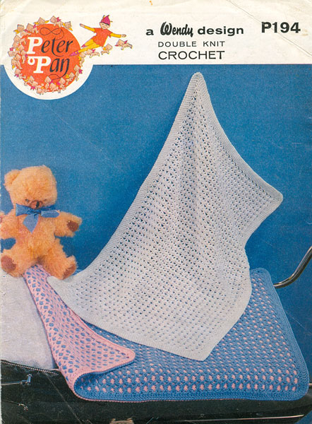 Peter Pan P194cr: Great vintage CROCHET pattern for pram cover from the early 1970's, worked in double knitting. The white one measures 30" x 23" and the bottom one, a double cover is 35" x 24". Pattern is a slightly worn condition.