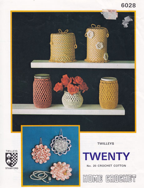 Twilley 6028cr: Great vintage toilet roll holder, pot cover, sachet, crochet pattern 1970. Great pattern with several gift ideas including 2 different loo roll covers, jam pot cover in three sizes and Lavender sachets or pin cushions. All worked in no20 cotton. Pattern is in great condition.