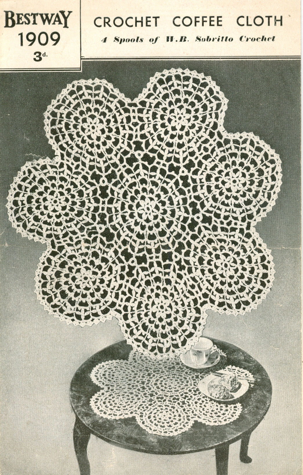 Bestway 1909cr: Vintage crochet coffee table cloth pattern 1930's. Pattern in good condition. original pattern as shown £2.00