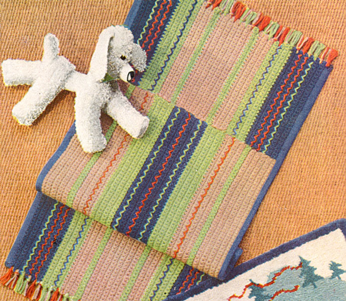Patons & Baldwin Rug CraftSC16 -24cr: Vintage crochet pattern for nursery rug in bright colours. Measures 27"x54" and takes 5lb of Turky wool (thick hard wearing wool) 5lbs = 2.25 Kg approx colour photocopy £1.25 pdf £1.00 |