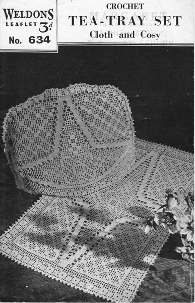 Weldon 634cr: Great vintage tea cosy mat crochet pattern 1940. This lovely pattern has instructions for the very pretty tea cosy cover (there is a pad inside, if you make one with a coloured material it look stunning showing through the delicate crochet cover - this is a fabulous pattern to work for WI or fete competions as well, for those who can do filet crochet (not me!) Chart is included, no measurement given, work to size desired. Pattern in very good condition. original pattern as shown £2.50