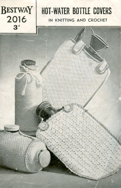 Bestway 2016: Great vintage knitting patern for 4 differnt hot wate bottles including the old fashioned stone ones and a metal one. 1930's pattern. One is crochet the others are all knitted in mercised yarn, this process gave the yarn a lustre and strength allowing it to move easily through the fingers and be knitted quickly with out fluffing up. It also improved the wearablitly of the garment. It is more popular tem now for sewing and crochet cotton, for the same reasons.