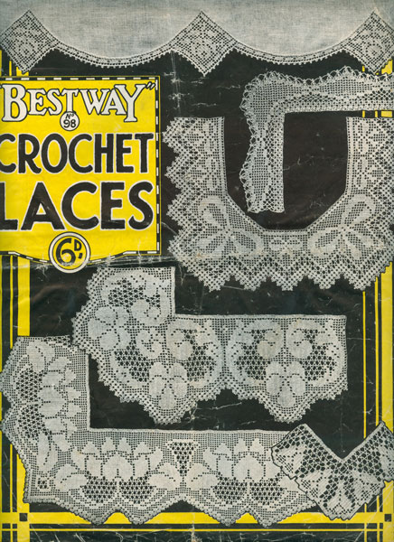 Bestway 98cr: Vintage crochet edgings and laces. Fabulous work book, but in poor condition from early in 1920's. Split spine, clear tape to some pages most instructions are clear. Sorry too big to scan a photocopy. original as described £2.50