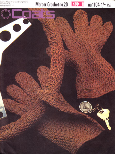 Coats 1104: Great vintage crochet pattern for glves and steering wheel cover 1970. Driving gloves to fit 8-8.5 glove size. Worked in no 20 crochet cotton 12 x 20g balls. Both easy to work and would ma a great Christmas gift. Pattern in great condition. original pattern as shown £2.00 colour All images and text on this website are copyright fab40s.co.uk and are for reference and historical interest only You can email sue@fab40s.co.uk |
