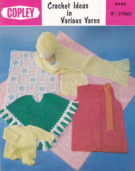 Copley2400: Great vintage crochet gift book form 1969. There are instructions for crochet poncho, sca rf set, waistcoat, tie, baby set and blankets. All worked in double knitting or 4ply. Book in lovely condition, 12 pages. original book £2.50 colour photocopy £2.99 pdf £1.99 |