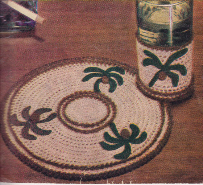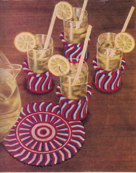DMC405C: Glass Hugs and coaster: Great vintage crochet pattern 1953. Palm Trees: Fabulous crochet pattern for brightening up any barbeque or party table. You get all three of the sets pictured here.USA colour All images and text on this website are copyright fab40s.co.uk and are for reference and historical interest only You can email sue@fab40s.co.uk |
