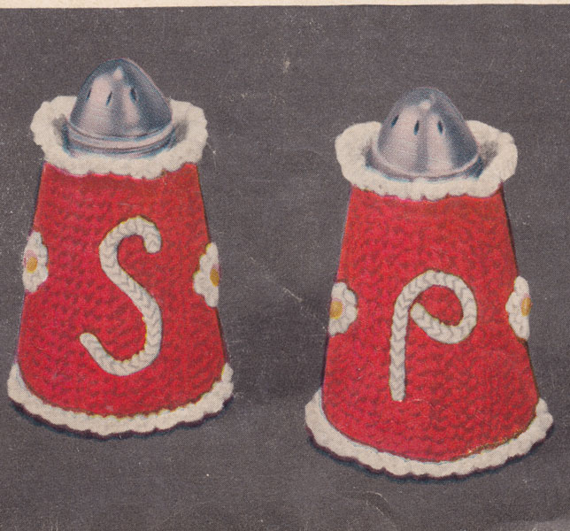 DMC 405cr: Pepper and salt covers: How about this then! Stuck for an idea for Mum or Gran for Christmas! Or how about a wedding gift for the couple with everything - I bet they dont have one of these! Easy to crochet in no5 cotton, use any colour, but red is a good festive shade. Includes toaster cover above. USA colour All images and text on this website are copyright fab40s.co.uk and are for reference and historical interest only You can email sue@fab40s.co.uk |