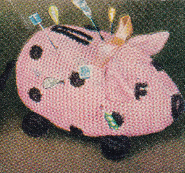 DMC 405D: Piggy Pin Cushion: Great vintage pin cushion in the shape of a pig from 1953- great for a gift or bazaar, quick to make and easy too. Could be a cot or pram toy (without the pins of course!)USA colour photocopy £1.50 pdf £125 |