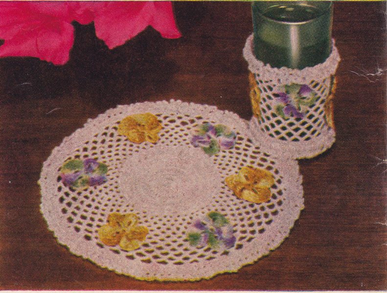 DMC 405B: >Glass Hugs and coaster:Great vintage crochet pattern 1953 Pansies: Fabulous crochet pattern for brightening up any barbeque or party table. 1953 You get all three of the sets pictured here.USA colour All images and text on this website are copyright fab40s.co.uk and are for reference and historical interest only You can email sue@fab40s.co.uk |