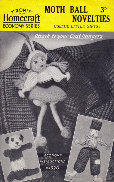 Homecraft 320: Great vintage crcohet pattern for MOTH BALL covers 1940s. This is a very unique gift! They are fun to make and can be also made into pram toys by adding bells, or just stuffing, as cat toys and probably a host of other ideas - see what you can think up. Great for using up all thos bits of cotton and wool. Could also be filled with lavender.