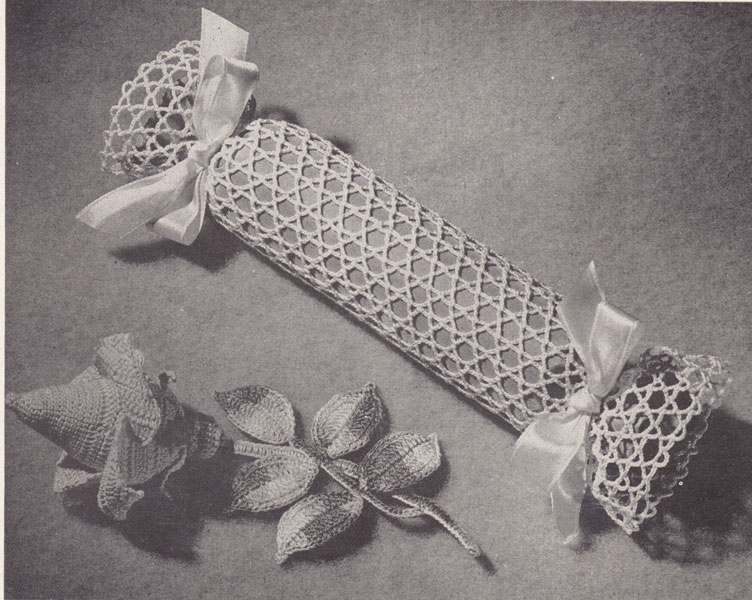 Lillys 1200: 34-35: Great vintage crochet pattern for pin cushion and perfume sachet - great vintage gifts pattern from 1944 all instructions including conversion for hook sizes included for both items.USA