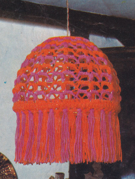 Patons 190-Tiffany shade: Great vintage Tiffany style shade in crochet 1974. All trendy homes had at least one of these - we had several! To fit 10 inch diameter frame - you can get the frames from craft shops such as Hobby Craft or on the internet. colour photocopy £1.25 pdfs £1.00 |