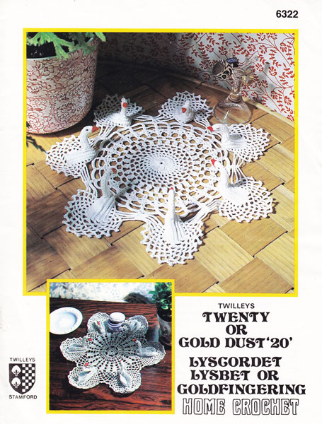 Twilleys 6322cr: Great vintage crochet swan mat 1970s. This pattern has instructions for the very popular design with raised swans, this one is for a mat or doily and is worked in no20 cotton. The centre with 7 swans is worked in a 1.50mm hook and the smaller one with 6 swans is worked on 1.25 and 1.50 hook. The larger one is 12 inches (30cm) across and the smaller one is 11.5 inches (29cm ) measured swan to swan. Pattern is in great condition. colour All images and text on this website are copyright fab40s.co.uk and are for reference and historical interest only You can email sue@fab40s.co.uk |