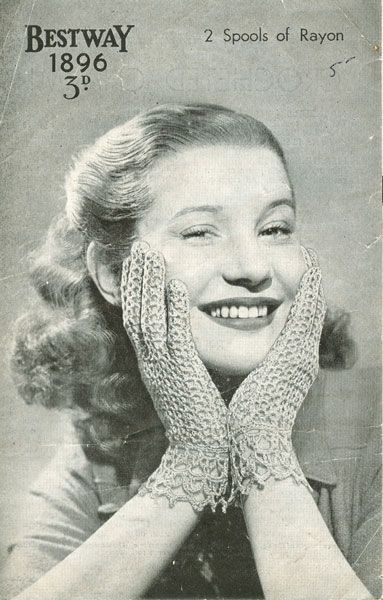 Bestway 1896: Lovely lacey gloves for that sepecial occassion, fabulous for a wedding or garden party. 1940's CROCHET in rayon, or modern synthetic yarn or fabulous in silk yarn. More crochet patterns coming soon on their own page.