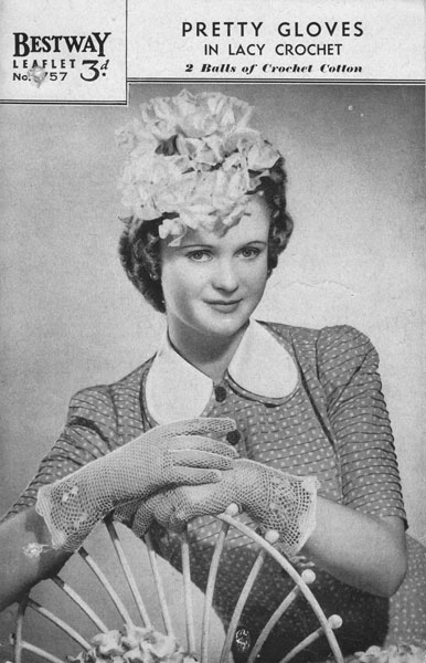 Bestway 757: Pretty vintage crochet pattern for lace gloves from late 1930's, worked in no 20 cotton = 2 x 20g.