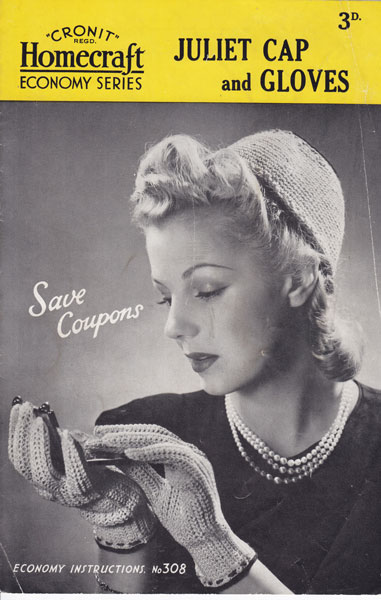 Homecraft 308: Great vintage 1940's wartime CROCHET pattern for Juliet cap and gloves, so elegant. Save Coupons! Easy to work and still stylish for to days fashions.