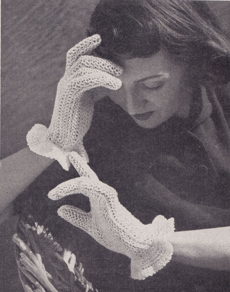 SS-ac-01: Pretty vintage CROCHET pattern for summer gloves, great for a wedding or garden party. 1950s. To fit glove size 6.5-6.75. in no 10 cotton.