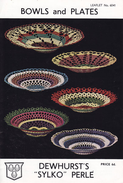 Dewhursts 6041: Fabulous crochet pattern 1950s. What a great gift idea for this Christmas! These colourful plates and bowls are crocheted in cotton and then stiffened with sugar. My great aunt use to make them - everyone had at least one - she also used to make the most beautiful swans and dressing table boxes in the same way. colour All images and text on this website are copyright fab40s.co.uk and are for reference and historical interest only You can email sue@fab40s.co.uk |