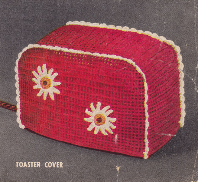 DMC 405cr: Toaster cover: How about this then! Stuck for an idea for Mum or Gran for Christmas! Or how about a wedding gift for the couple with everything - I bet they dont have one of these! Easy to crochet in no5 cotton, use any colour, but red is a good festive shade. Includes pepper and salt covers below. USA colour All images and text on this website are copyright fab40s.co.uk and are for reference and historical interest only You can email sue@fab40s.co.uk |