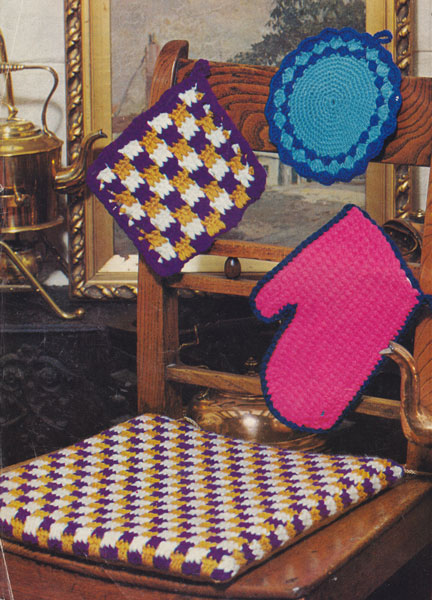 Patons 190-Kitchen Crochet: Great vintage crochet pattern for kitchen items 1974. There are instructions to crochet set pad, oven mit, pot holder and kettle holder all in double knitting yarn. colour All images and text on this website are copyright fab40s.co.uk and are for reference and historical interest only You can email sue@fab40s.co.uk |