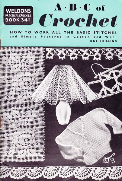 Weldons 341cr: Great vintage crochet book 1940'/50s. This one also has 24 pages, but different stitches and motifs. Along with the basic stiches there are instructions for such vintage stitches as star, ball, zig-zag, daisy, Marguerite, clover stitch and many more. There are instuctions to make the lamp shade, filet border and babies cardigan shown on the cover as well as rose motifs, flower motifs and some really easy mats to make, to get you started, don't forget that you could put beads on the mats to make jug covers - get ready early for Christmas. Great starter book with that reto edge. pdf £1.99 only |