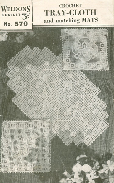 Weldons 570:Vintage crochet pattern for tray cloth and matching mats in simple filet design. size 20 cotton and imperial hook 5. Great condition 1940's original pattern £2.50