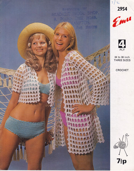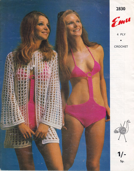 *Emu 2830sw: Great vintage crochet pattern from the 1969 for swimsuit and jacket. Worked in 4ply, always work a tension square. Always work a tension square To fit 34" and 36" bust. (click to go to main swimwear pages)