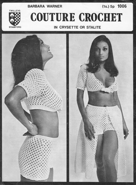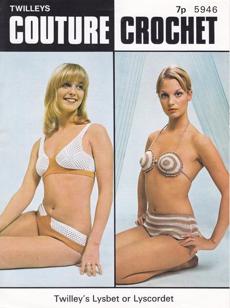 Twilley 5946sw: Fab duo of bikini crochet patterns from the 1970's to fit 32"-36" bust and 34"-38" hips. Easy to make and strikingly trendy - set the heat at high on the beach this summer and sizzle at the top of the fashion tree on holiday this year.