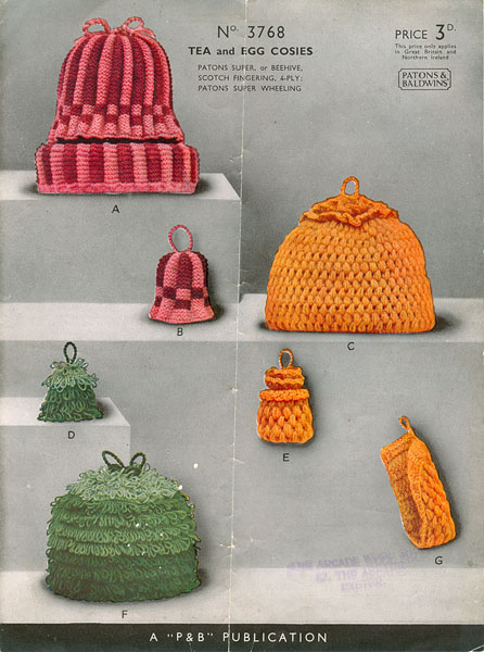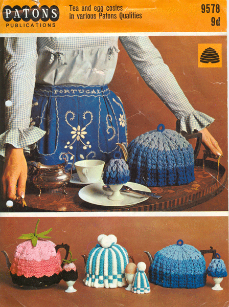 Patons 8006- tea cosy: Great little pattern for vintage tea cosy to fit a 2 pint tea pot, in crochet, it even has it's own little handle, from 1969 colour photocopy £1.50 pdf £1.25 |