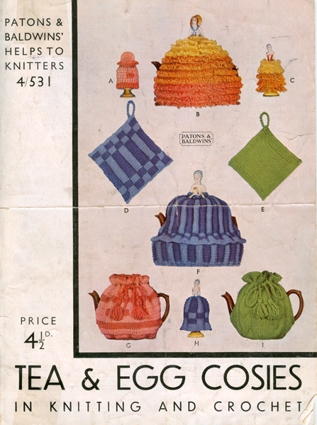 Patons 4/531: Fabulous vintage pattern for 4 stunning tea cosies, with egg cosies to match and kettle holders Two of the designs are knitted and two are crochet.(dolls house doll bodies can be used for the egg cosies or try a tiny knitted doll) 1930's colour All images and text on this website are copyright fab40s.co.uk and are for reference and historical interest only You can email sue@fab40s.co.uk |