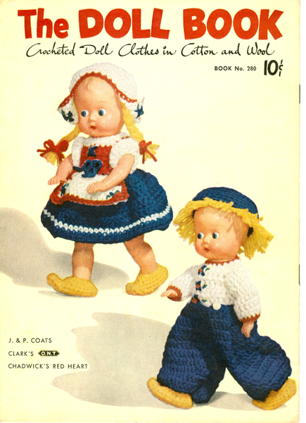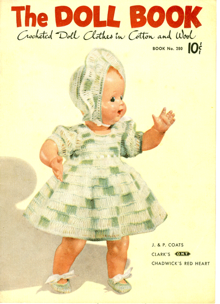 Coats 280: Vintage dolls crochet pattern bookl - The Doll Book: Crocheted Doll Clothes in Cotton and Wool: This lovely book comes from the USA and is full of delightful crochet patterns for vintage dolls 8", 15" and 22".Printed in 1951. There are 7 patterns.