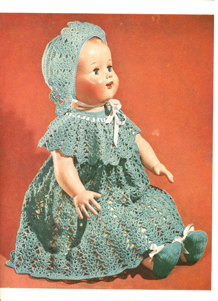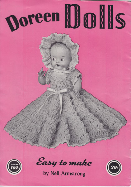 Doreens Dolls 102:Doreen: Fabulous vintage crochet doll patterns 1951. This one is for an 11 inch baby doll and is dress, bonnet, panties and bootes. From the USA so hook conversion chart will be sent. Some of the patterns are availbel seperately see below. For tiny button suitable for these dolls see tiny buttons on button pages.