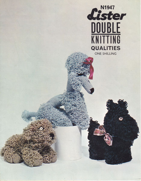 Lister N1947: Fabulous pattern from 1959 for baby poodle, scottie and adult poodle.These little dogs are worked in CROCHET in double knitting yarn. No sizes given.